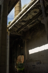 Crossing the city towards east and continuing along the shore, we can find the remains of what the Brickyard Steam used to be. Here the human traces are clearly visible too, but the time has been less kind with the building structures. In this spectral environment, as scares in darkness, some holes in the structure let the harsh light of the sun to get in.